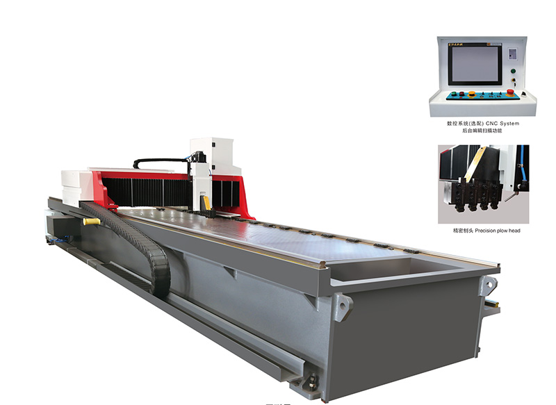 機(jī)床性能及特點(diǎn): 創(chuàng)槽機(jī)機(jī)座、橫梁均采用框架結(jié)構(gòu)設(shè)計(jì),機(jī)床整體剛性好,堅(jiān)固耐用。 嚴(yán)格按照機(jī)床加工工藝制作,采用電爐回火,消除焊接應(yīng)力減少設(shè)備變形。 JDV刨槽機(jī)加工件采用液壓夾緊系統(tǒng)固定,開速度快并保證強(qiáng)力緊。液壓系統(tǒng)增設(shè)蓄能器補(bǔ)償電機(jī)間式工作節(jié)約能源,控制油溫。 JDV創(chuàng)槽機(jī)使用四個(gè)刀加工“V”槽,因此切削量分配均勻減少加工件的變形。并且選配微量冷卻系統(tǒng),延長(zhǎng)刀具的使用壽命,降低生產(chǎn)費(fèi)用 使用本刨槽機(jī)只需輸入加工尺寸即可完成。根據(jù)操作人員和材質(zhì)的不同,可用旋紐調(diào)整加工速度,便于操作人員操作。 采用伺服電機(jī)和感應(yīng)器保證操作人員的安全。 設(shè)備發(fā)生異常時(shí)顯示屏上出現(xiàn)報(bào)警信息容易維修。 使用本刨槽機(jī)加工時(shí)只在加工件的投放和取出時(shí)需要人力,因此可節(jié)省人工。