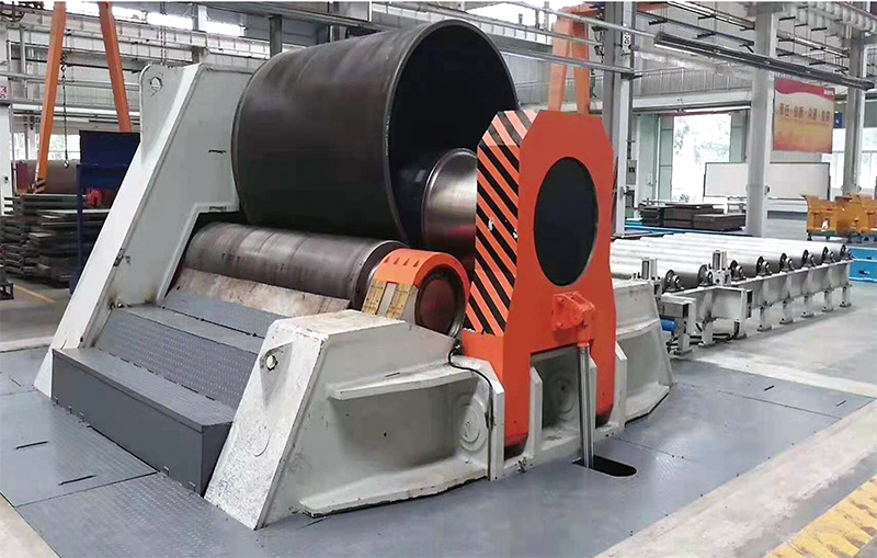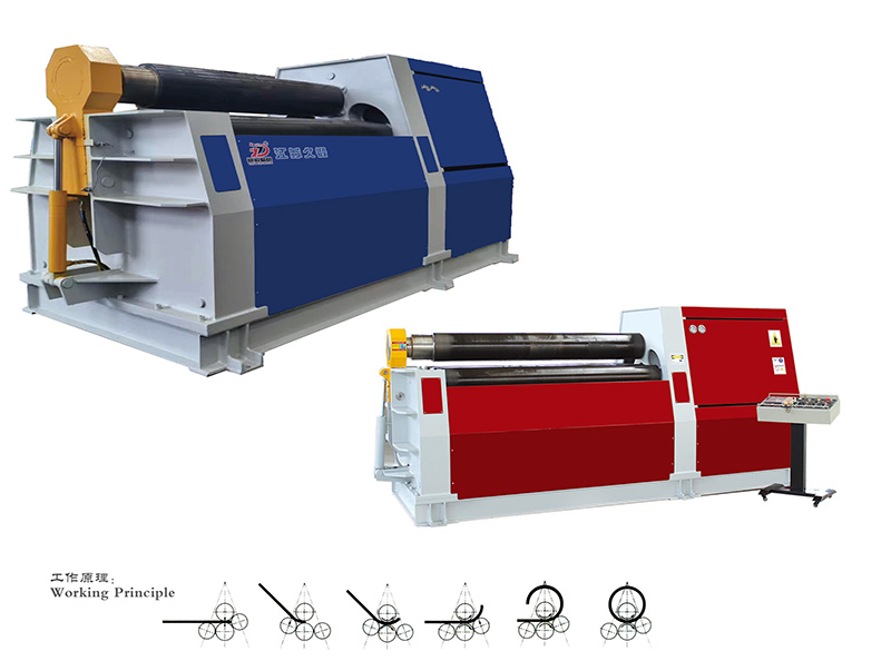 性能特點: 該設備具有板材端部的預彎功能,能將金屬板材一次上料,不需調頭即可完成板端預彎和工件的卷制成形。該機上工作輥為主驅動輥,下輥和兩側輥的升降均采用液壓驅動,升降位移由計算機控制,自動調平,屏幕顯示,翻轉軸承體的傾倒和復位采用液壓傳動,上輥的尾部裝有平衡機構,可以方便卸出卷制后的工件及簡體。設有移動式獨立操作臺,可隨時移動操作,機器設有安全聯鎖裝置,該機技術水平高,功能全,精度高,操作方便。是能源、交通、石油、化工、鍋爐、造船、水電、金屬結構等行業卷制圓形、弧形和錐形工件最為理想的首選機型。